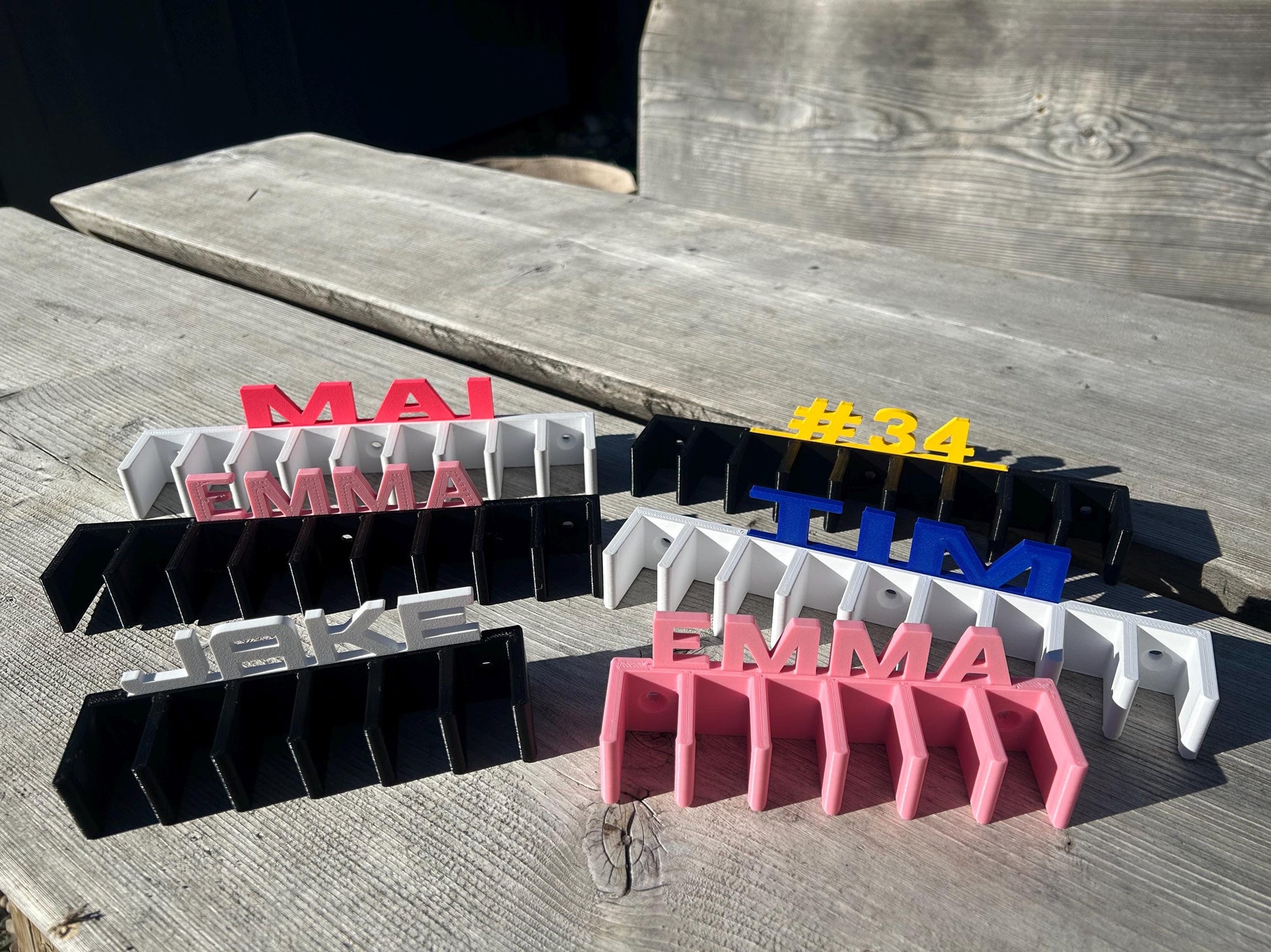 Keep up to 9 hockey sticks neatly stored and off the floor with our wall-mount hockey stick rack. Personalize it with a name (up to 13 characters) or the phrase "I Love Hockey" for a unique and practical addition to any space.