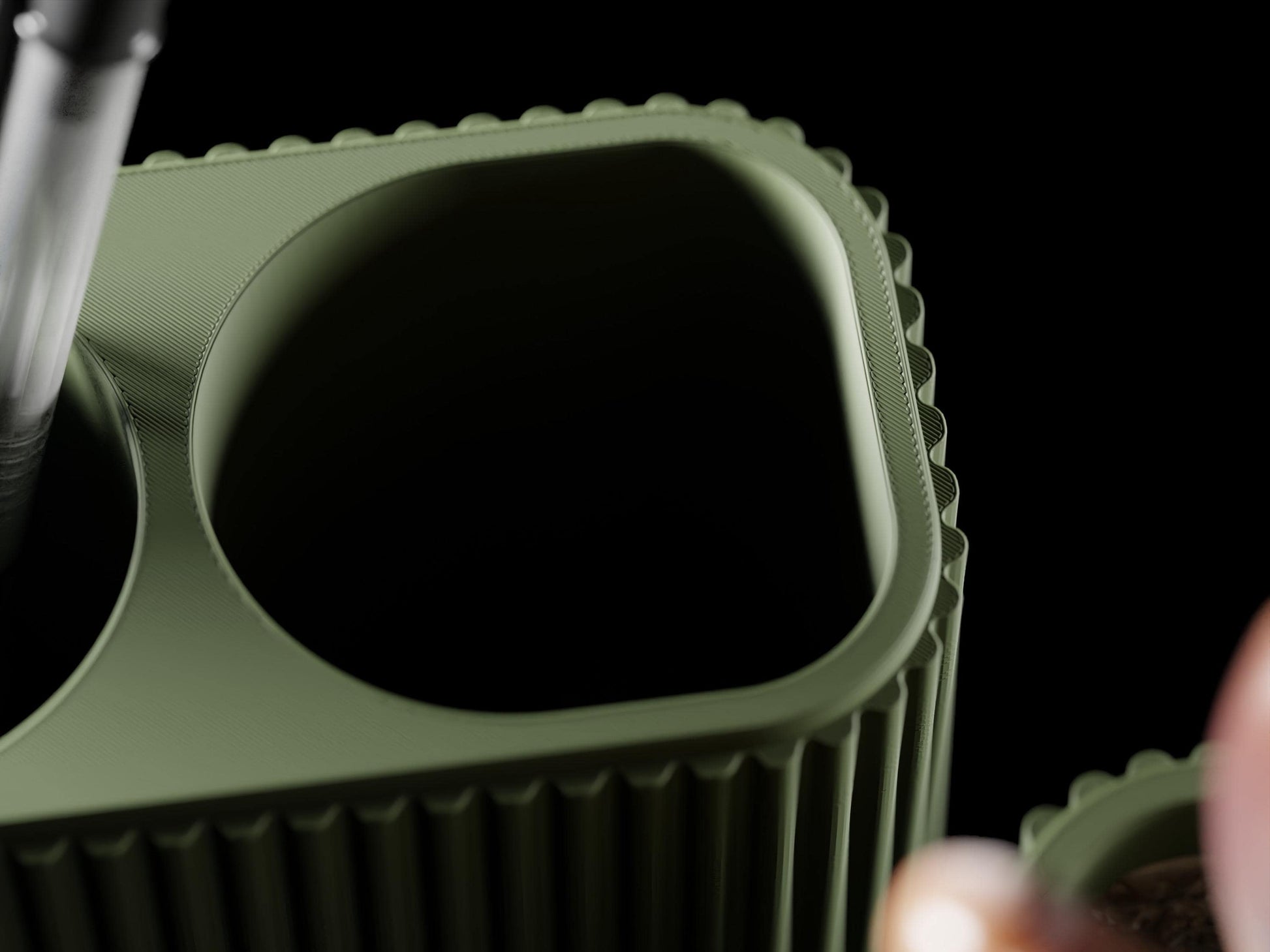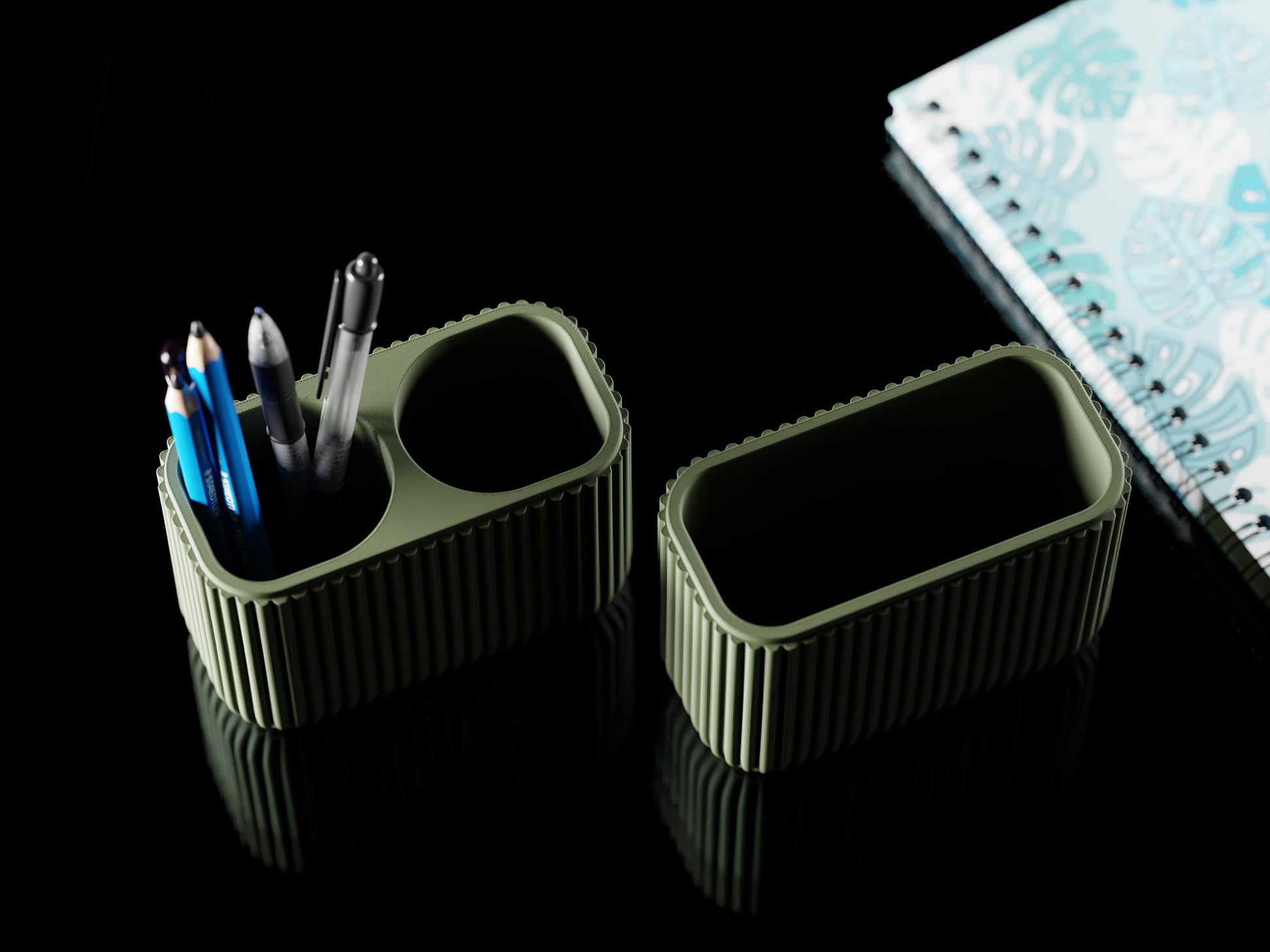 With two thoughtfully sized compartments, Elara is designed to adapt to your needs - whether you use it as a pen and stationery holder, a planter for small greens, or a stylish catch-all for everyday essentials. The subtle vertical lines give it a timeless modern look, while the proportions ensure stability and practicality.